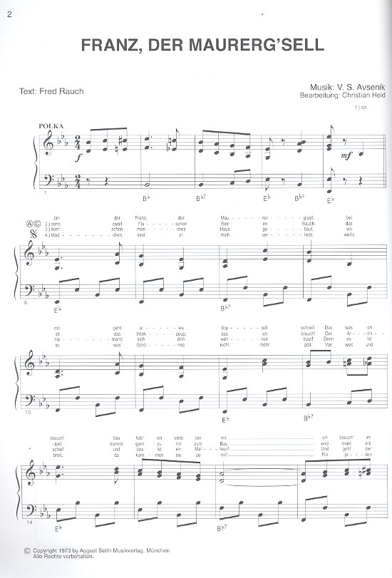 Franz der Maurerg'sell Freunde wir bleiben Freunde Ich möchte so gern nach Oberkrain Fest im Walde Fuer dich allein Glocken der Heimat Goldene Oberkrainer Klänge Gruß an das Elsass Gruß an Inssbruck Gruß aus Steibis Oberkrainer Geburtstagsständchen Klarinetten-Polka Zwei alte Leute Ich hör so gern Harmonika Auf der Almhütte Ich blieb allein Resi-Walzer Ich wart auf dich Tiroler Polka Leise rauscht das Meer Jäger-Trophäen Herbstwalzer Jägerlatein in Oberkrain Lipizzaner Reitermarsch Mein Heimatland Liebes Mädchen komm Zu jedem Feste wünschen wir das beste Wir grüßen dich