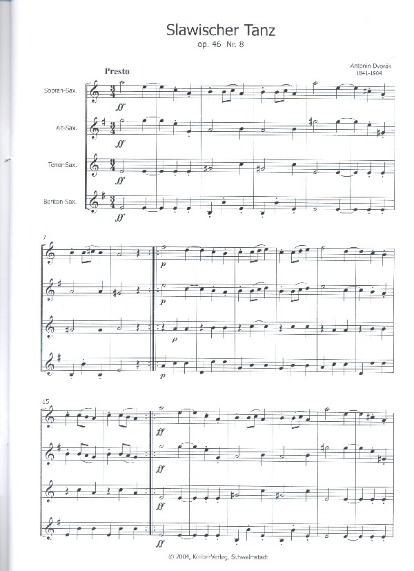 Slawischer Tanz op.46,8 für 4 Saxophone