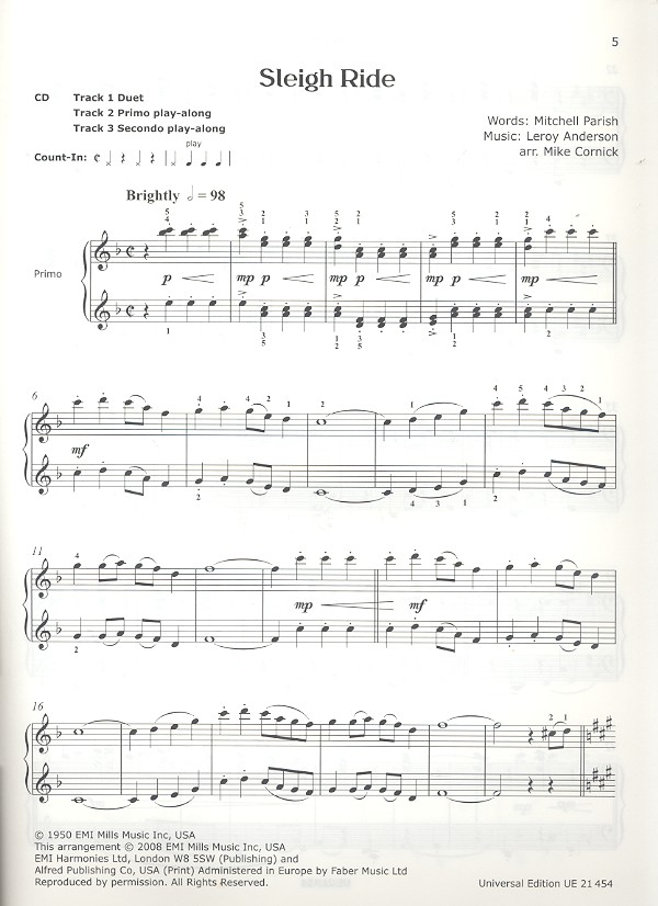 Sleigh Ride for two (+CD) for piano duet