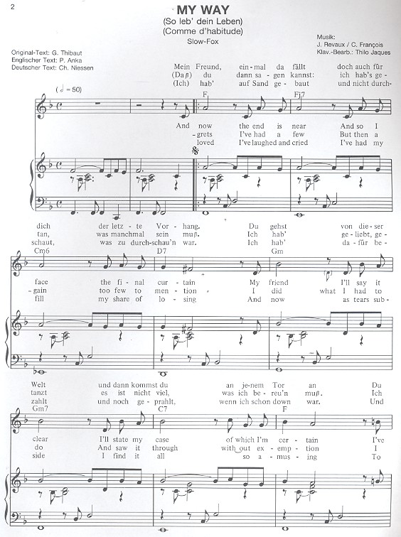 Francois, C., ed Stone, Fred, arr Thibaut, G., Text Anka, Paul, Text Niessen, Ch., Text My Way Comme d'habitude