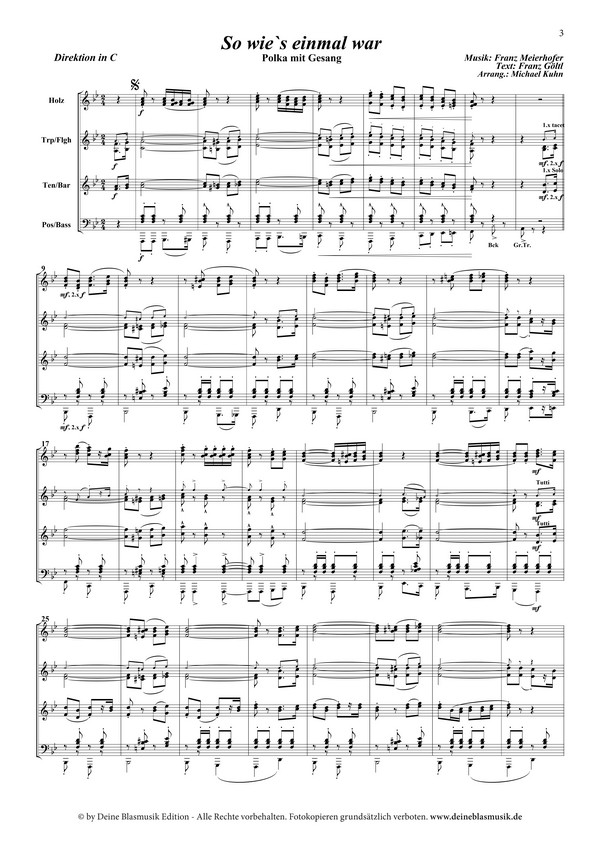 Die im böhmischen Stil gehaltene Polka mit allen Elementen, die ein Blasmusik-Herz höher schlagen lassen, wurde von Michael Kuhn gefühlvoll orchestriert.