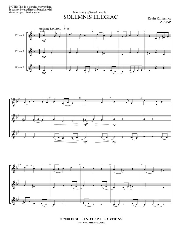 | Untertitel: | for 3 horns in F score and parts |