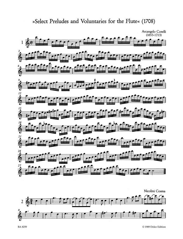 Oeuvres baroques pour flute Plaisir musical Thomas, Bernhard, ed Select Preludes and Voluntaries for the Flute Stücke aus The Division Flute Präludien und Traits aus L'art de préluder (Hotteterre) Zwölf Fantasien (Telemann) Stücke aus Pièces sans Basse (Braun) Soli aus der Giedde Sammlung (Quantz) Partita (Bach) Sonata (Bach) ln diesem Kompendium mit Sololiteratur für Altblockflöte sind die großen Namen der Flötenkomposition im 18, Jahrhundert vertreten: Hotteterre, Telemann, Johann Sebastian und Carl Philipp Emanuel Bach, Jean Daniel Braun, Quantz sowie mit den Select Preludes and Voluntaries zahlreiche weitere Komponisten aus ganz Europa. Dem Brauch der Zeit entsprechend werden solche Werke, die ursprünglich für Querflöte geschrieben wurden, durch Terztransposition der Altblockflöte zugänglich gemacht. Der Blockflötist erhält in dieser Sammlung sonst nur einzeln und zum Teil schwer zugängliche Standardliteratur für sein lnstrument- eine stilistisch breite Auswahl für Unterricht und Konzert.
