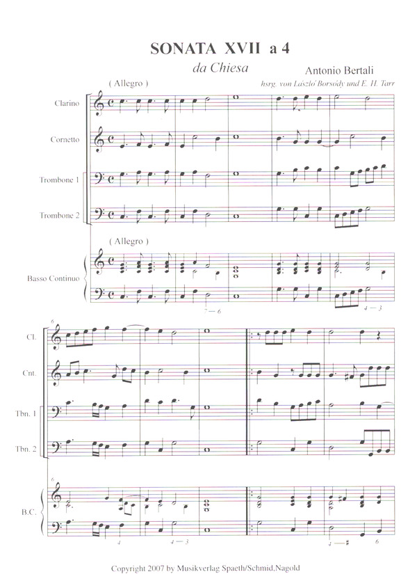 | Untertitel: | für Trompete, Zink, 2 Posaunen und Bc Partitur und Stimmen |