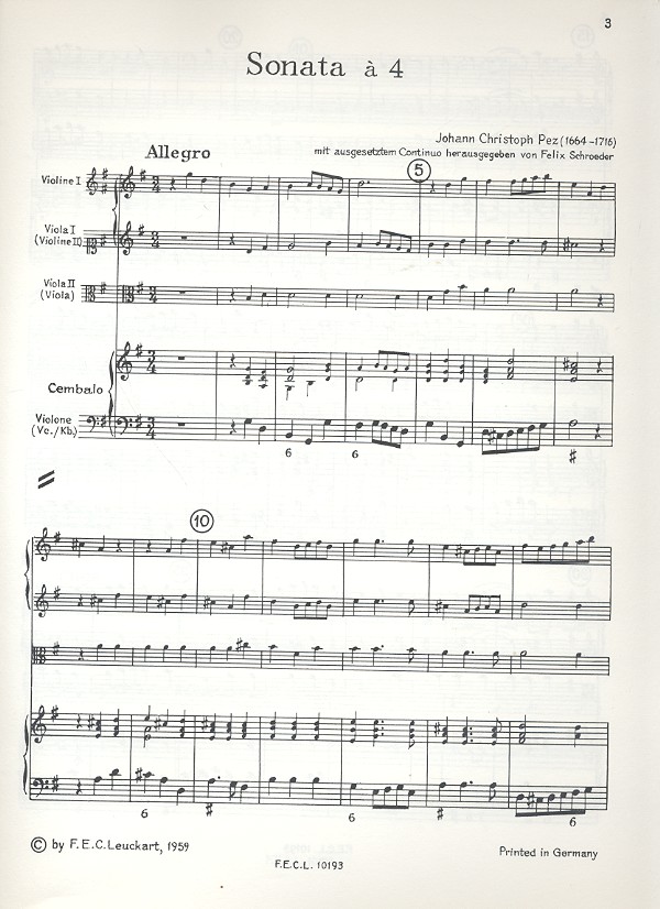 | Untertitel: | für 2 Violinen, Viola und Cembalo Partitur und 4 Stimmen |