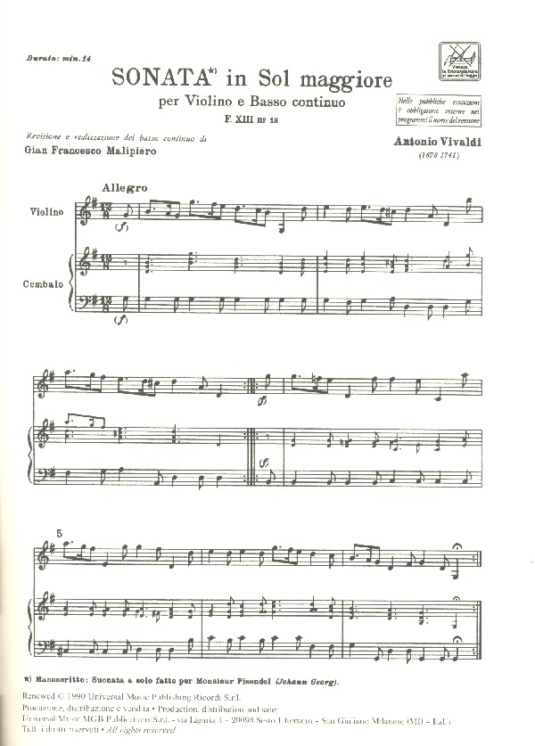 Produktinformationen "Sonata in sol maggiore F.XIII:13 (RV25)"