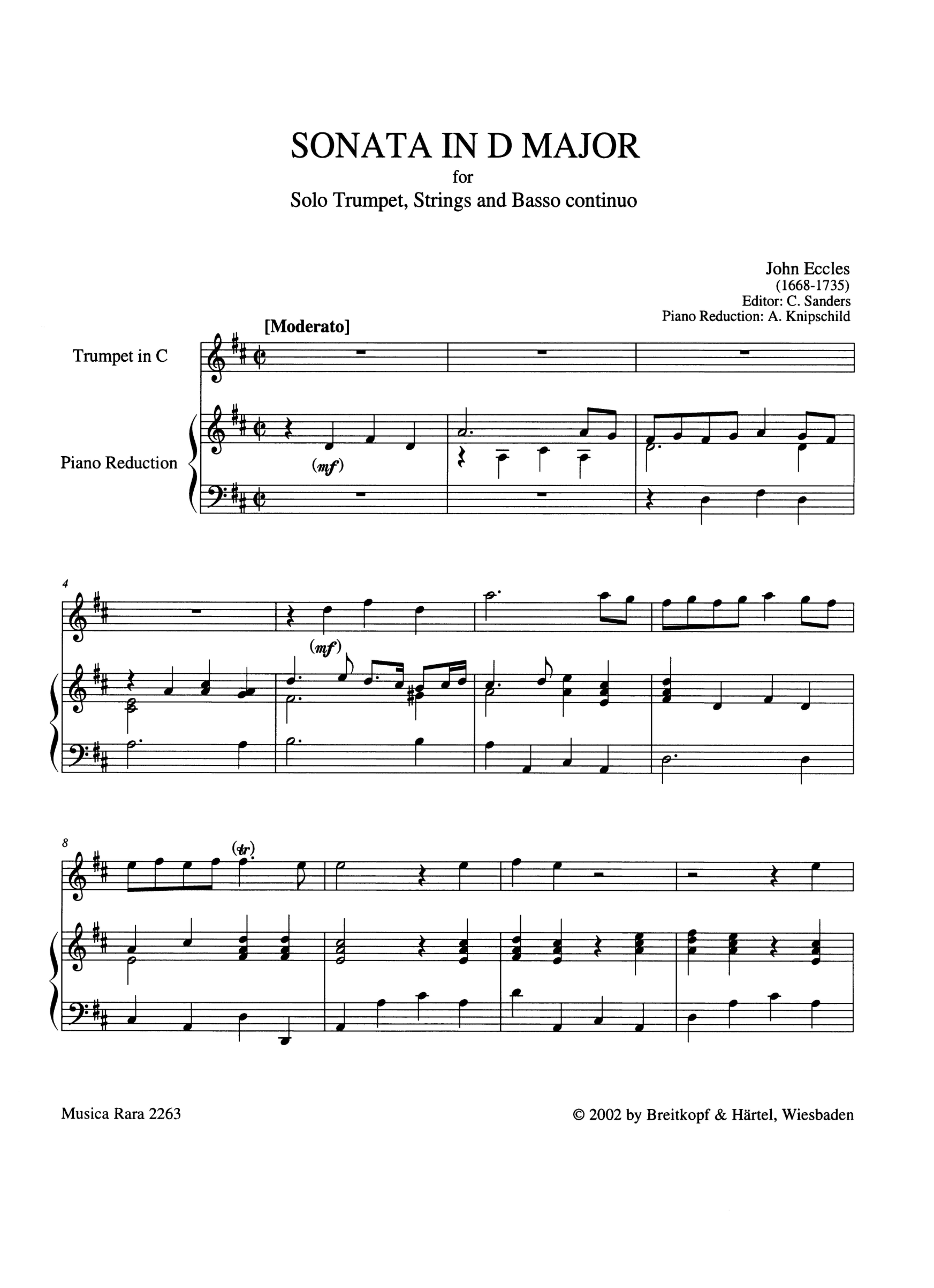 | Untertitel: | for trumpet, strings and bc for trumpet in D, Bb or C and piano |