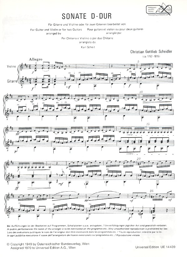 | Untertitel: | für Violine und Gitarre (2 Gitarren) |