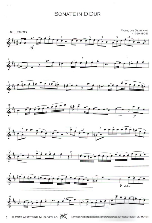 Klassische Musik für Sopransaxophon Original in F-Dur für Flöte und Klavier