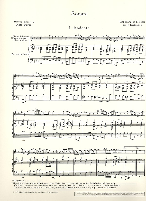 | Untertitel: | für Alt-Blockflöte (Flöte, Oboe, Violine) und Basso continuo, Violonce |
