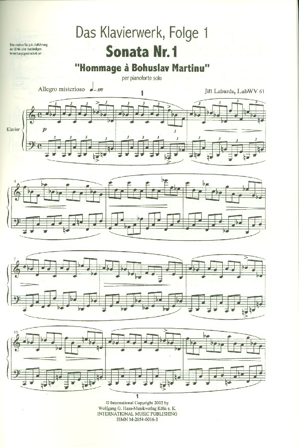 Sonate Nr.1 LABWV61 Hommage a Bohuslav Martinu