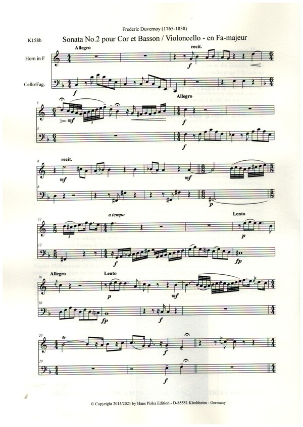 | Untertitel: | für Horn in F und Fagott (Violoncello) Stimmen |