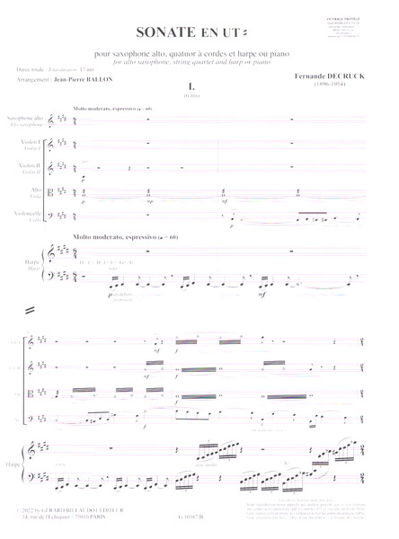 | Untertitel: | pour saxophone alto, quatuor à cordes, harpe ou piano partition et parties |