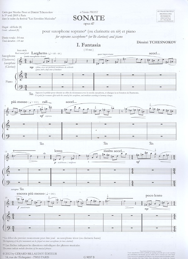 Produktinformationen "Sonate op.47 pour saxophone soprano"