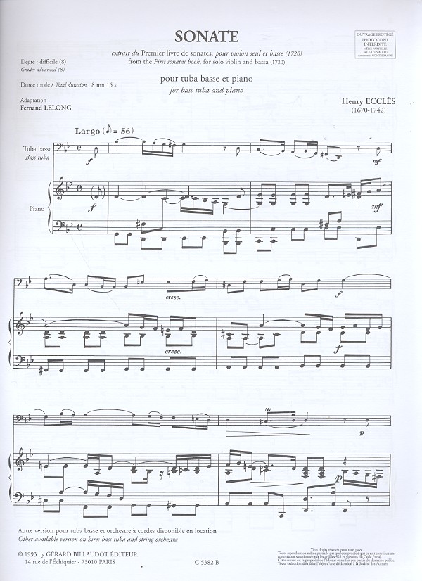Lelong, F., ed Extrait du premier livre de sonates pour violon seul et la basse