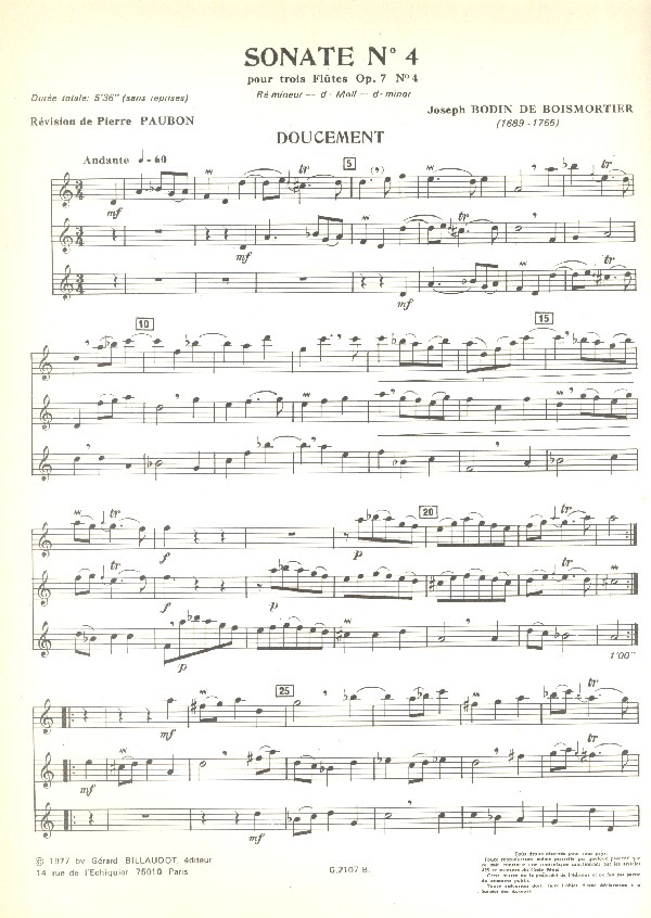 Sonate ré majeur op.7,4 pour 3 flûtes