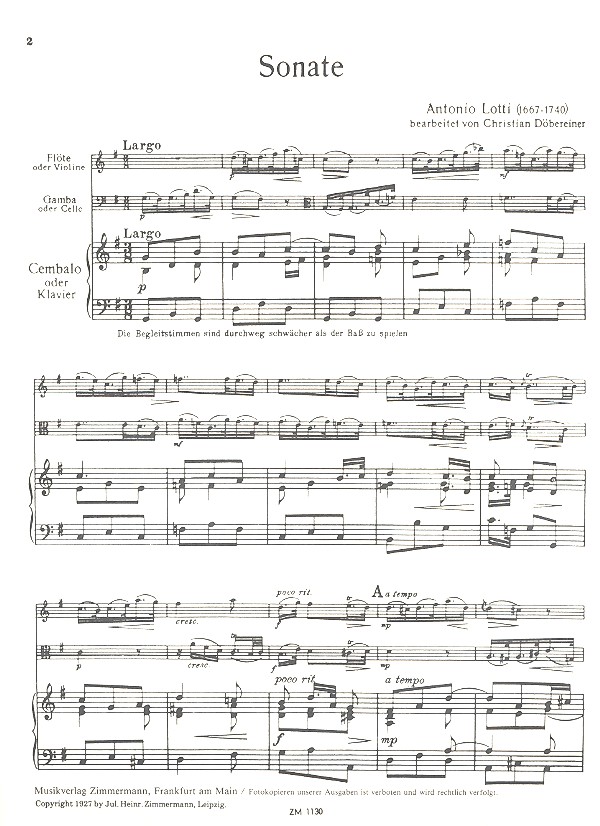 | Untertitel: | für Flöte (Violine), Viola da gamba (Violoncello), Klavier (Cembalo) Stimmen |