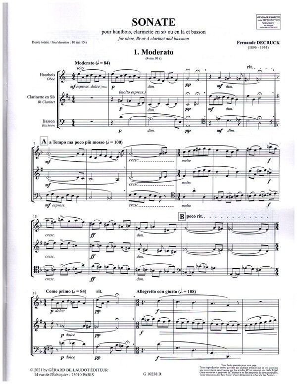 | Untertitel: | pour hautbois, clarinette en sib ou en la et basson partition et parties |