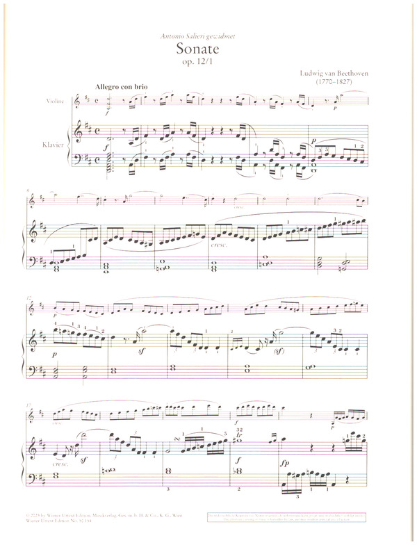 Band 1 von Beethovens Sonaten für Violine und Klavier umfasst die um 1797/98 entstandenen drei Sonaten op. 12 sowie das 1800 komponierte Werkpaar der Sonaten op. 23 und 24, deren letztere später unter dem Beinamen ?Frühlingssonate? bekannt geworden ist. Beethovens Violinsonaten sind von Anfang an Duos für zwei gleichberechtigte Partner. Musikalisch sind sie von unterschiedlichem Charakter und stehen den Klaviersonaten an Erfindung und Kühnheit in formaler wie harmonischer Sicht in keiner Weise nach. Die Neuausgabe beruht auf allen erhaltenen Originalquellen, dazu auf den sorgfältig redigierten Nachdrucken von Simrock. In der Edition wurden plausible Divergenzen zwischen den beiden Instrumenten (etwa in der Bogensetzung) beibehalten, unbegründete Angleichungen wurden bewusst vermieden. Die Interpretationshinweise spüren den wesentlichen Aspekten der Aufführungspraxis aus Beethovens Zeit nach, sowohl aus violinistischem als auch aus pianistischem Blickwinkel.