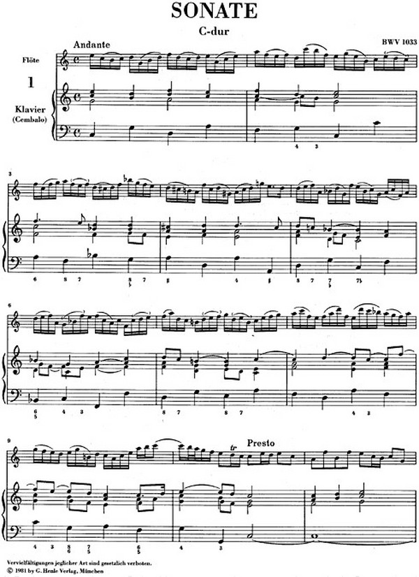 3 Bach zugeschriebene Sonaten Eppstein, Hans, ed und Aussetzung BWV1033 BWV1020 BWV1031