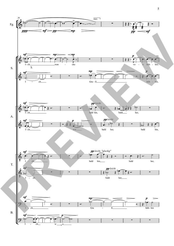 | Untertitel: | für gem Chor (SSAATTBB) und Fagott solo Solostimme Fagott (dt) |