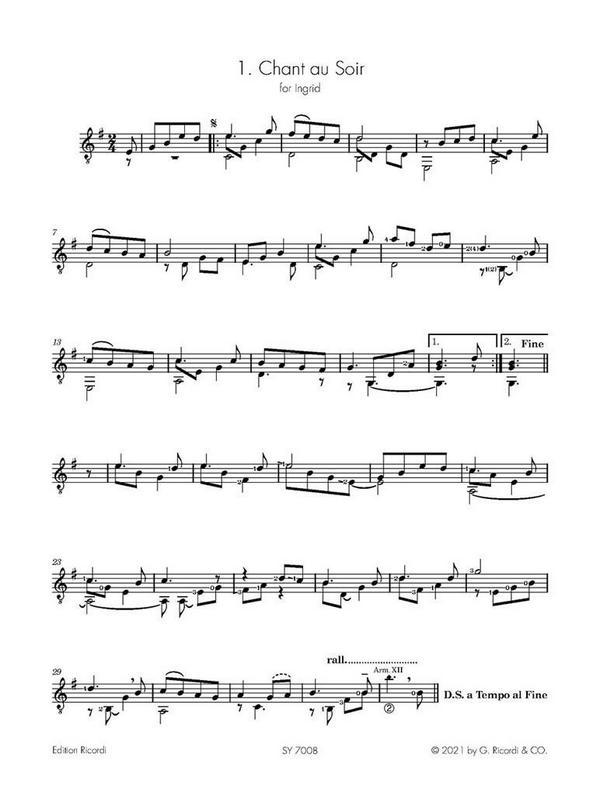 10 Pieces for Solo Guitar Chant au Soir Danse sous la Pluie Blues Chat Arthur's Rag Poppy Dreaming A Sweet Song for Bella When Evening Comes Envolée He Loves Me, He Loves Me not... A Simple Song of Hope