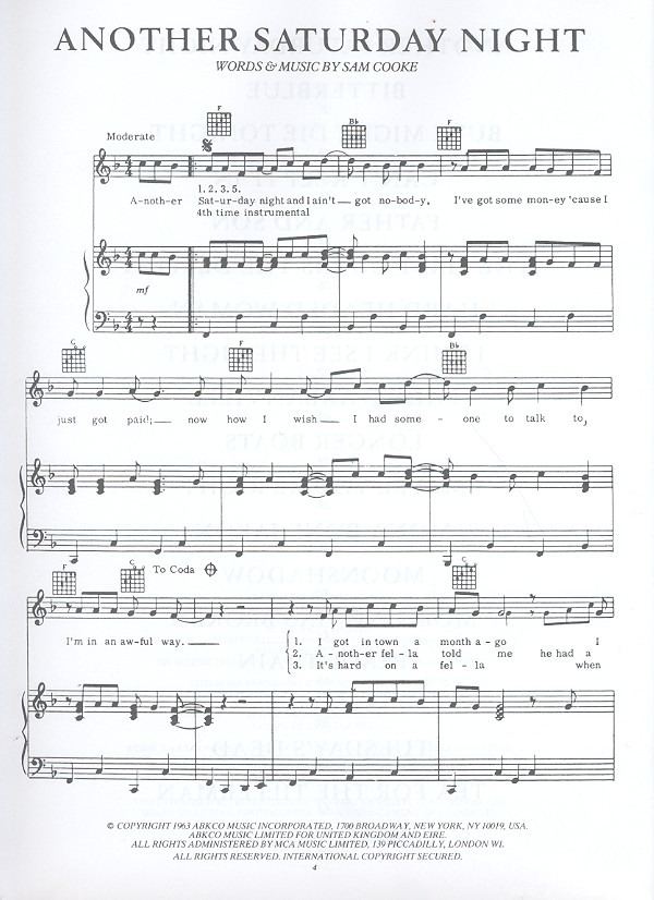 Another Saturday Night Bitterblue But I might die tonight Can't keep it in Father and Son The first Cut is the deepest Hard headed Woman I think I see the Light Lady d'Arbanville Longer Boats Maybe you're right Mona Bone Jakon Moonshadow Morning has broken Peace Train Sad Lisa Tuesday's dead Tea for the Tillerman Wild World