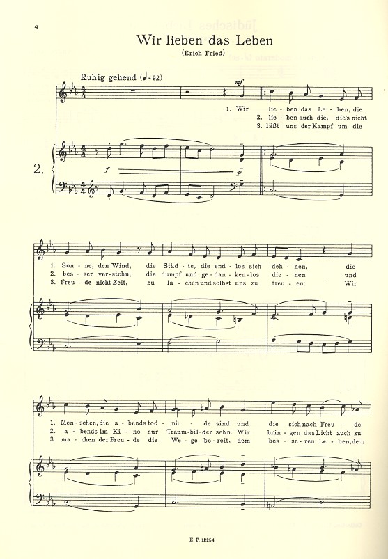 Jüdisches Liebeslied (Gerlach, Jens) Wir lieben das Leben (Friedl, Erich) Lied vom Glück (Brecht, Berthold) Taglied (Hacks, Peter) Schön Dorindgen (Hacks, Peter) Limericks (Hacks, Peter) Auf dem Bergarbeiterball (Hacks, Peter)