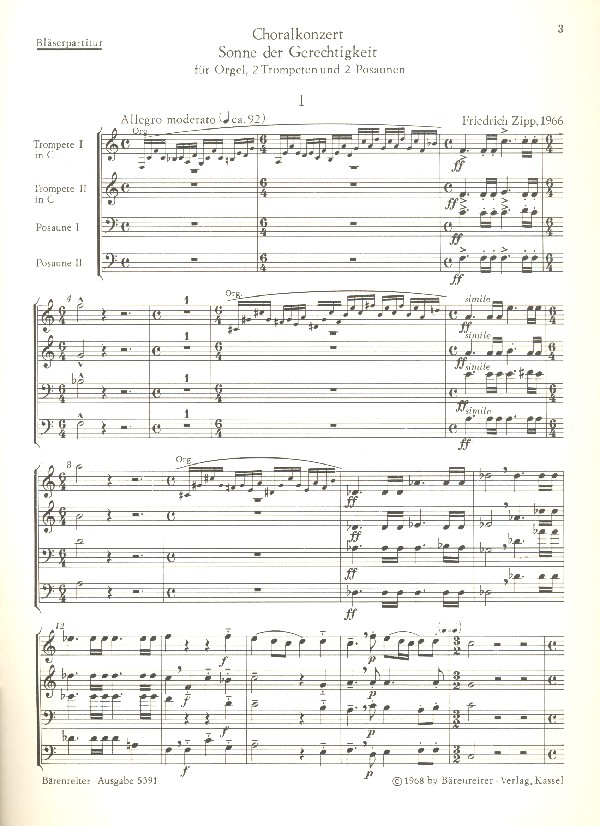 | Untertitel: | für 2 Trompeten, 2 Posaunen (Streicher) und Orgel Bläserpartitur |