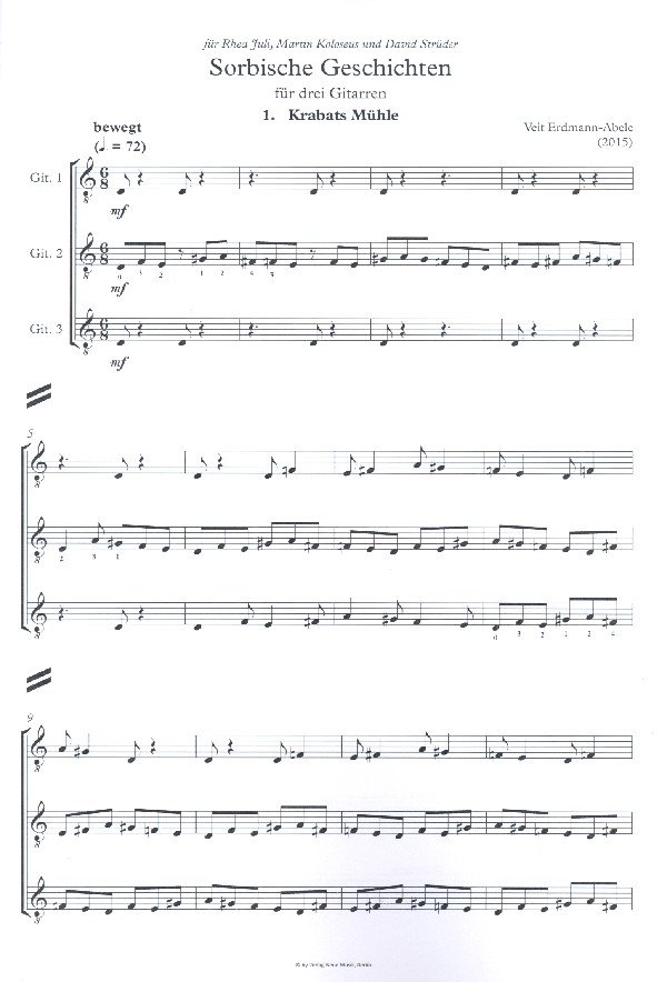 | Untertitel: | für 3 Gitarren Partitur und Stimmen |