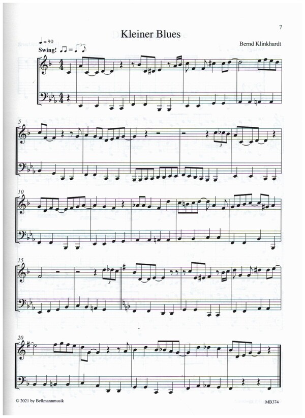 31 Duos für Tuba und Trompete sowie Solostücke für Tuba in unterschiedlichen Musikstilen und unterschiedlichen Schwierigkeitsgraden von Blues, Klassik, Kirmes, Boogie, Swing ... Opening Leicht beswingt Wechselspiel Kleines Blues Boogie Time Die Doppelzunge When the Saints go Marching in Thomas jazzt los Kirmeswalzer Kirmeswalzer, Tuba solo Down by the Riverside Tonleiterspiel Choral Der fröhliche Landmann Menuett The Wellermann The Wellermann, Tuba solo Wie damals Ein Männlein steht im Walde, Tuba solo mit Variationen Ode an die Freude Kleine Hymne The Prince of Denmark's March Hey Pippi Langstrumpf Im schönsten Wiesengrunde Jingle bells We wish you a merry christmas Hört der Engel helle Lieder Tochter Zion O du fröhliche Stille Nacht Ade zur guten Nacht
