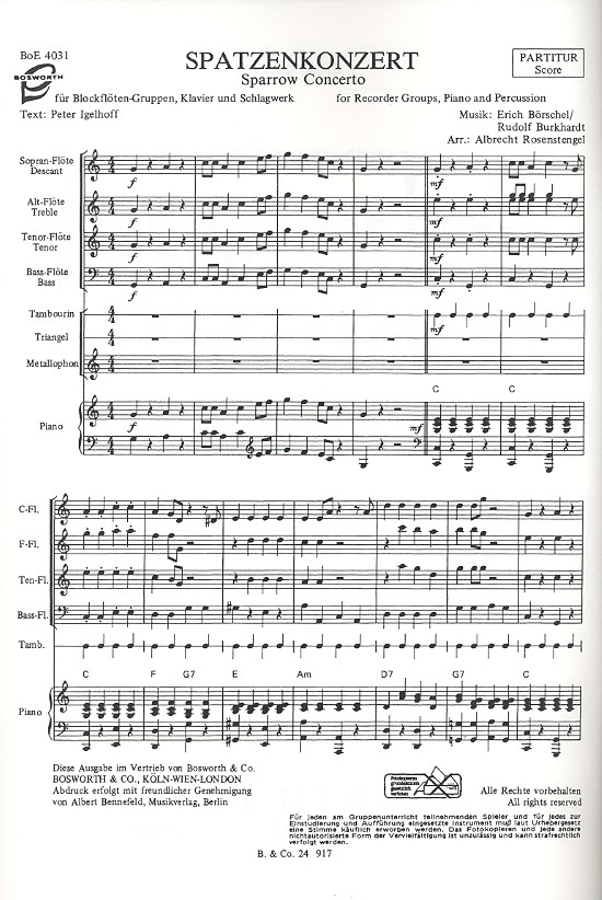 | Untertitel: | für Blockflötengruppen mit Schlagwerk und Klavier Partitur und Stimmen |