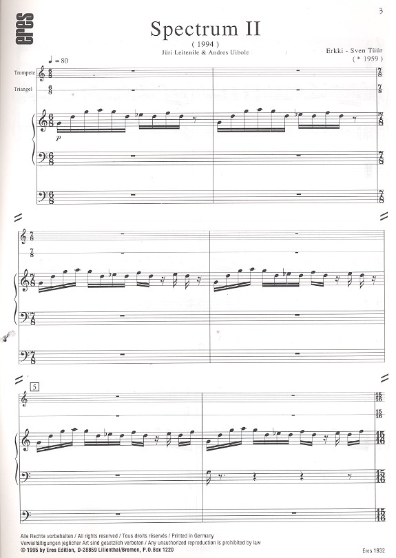 | Untertitel: | für Orgel, Trompete und Schlagzeug ad lib. |
