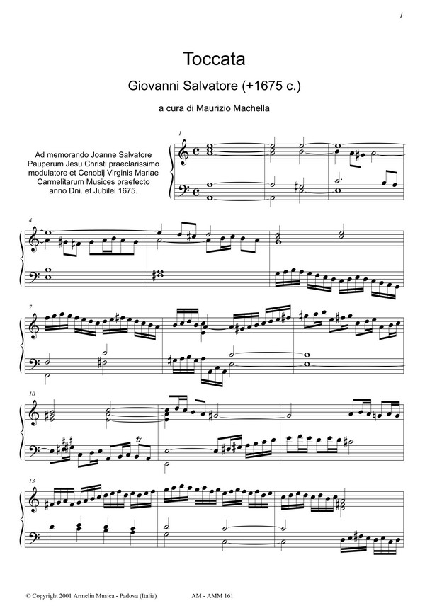 Toccata (G. Salvatore) Toccata per Studio (A. Scarlatti) Overtura (Durante) Toccata (Durante) Sonata (Pergolesi) Suonata del Pergolesi Sonata per Cembalo o Organo (Pergolesi) Sonata-Fuga (Fiorillo) Sonata (Insanguine) Sonata (Sigismondo)