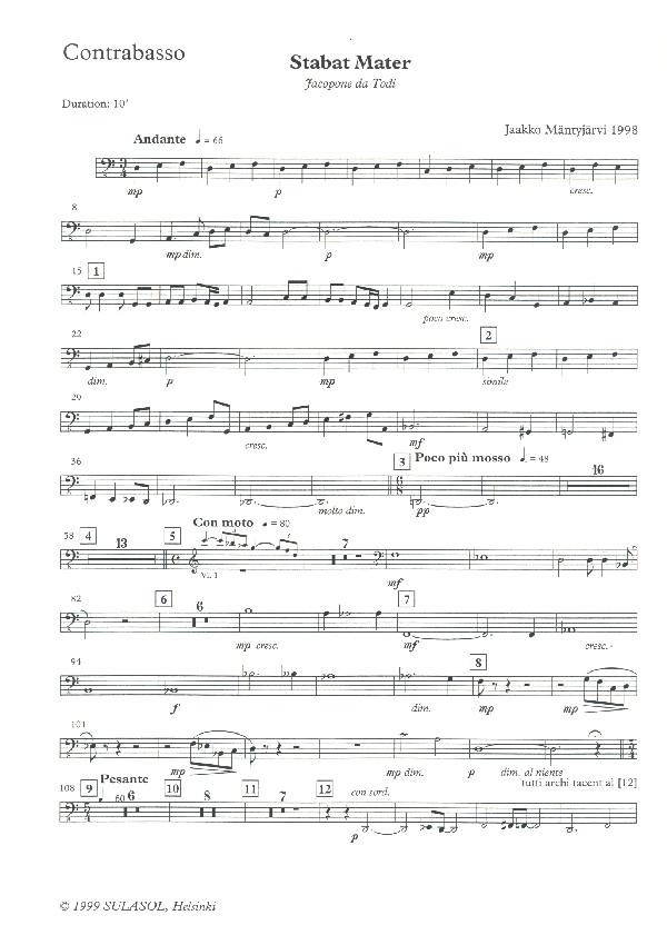 | Untertitel: | for mixed chorus and string orchestra double bass |