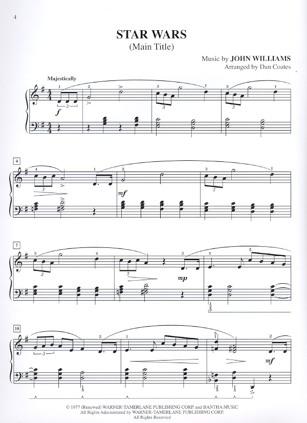 The Phantom Menace Star Wars (Main title) Duel of the Fates Qui-Gon's Funeral Augie's Great municipal Band Attack of the Clones Across the Stars The imperial March The Meadow Picnic May the Force be with you Revenge of the Sith Princess Leia's Theme Battle of the Heroes The Throne Room The most popular pieces from Episodes I, II & III are arranged for intermediate piano by Dan Coates. 8 pages of full-color art are included.