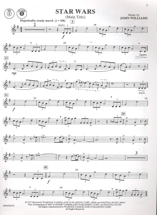 The Phantom Menace Attack of the Clones Revenge of the Sith Star wars Theme Duel of the Fates Qui.Gon's Funeral Augie's great municipal Band Across the Stars The imperial March The meadow Picnic May the Force be with you Princess Leia's Theme Battle of the Heros The Throne Room