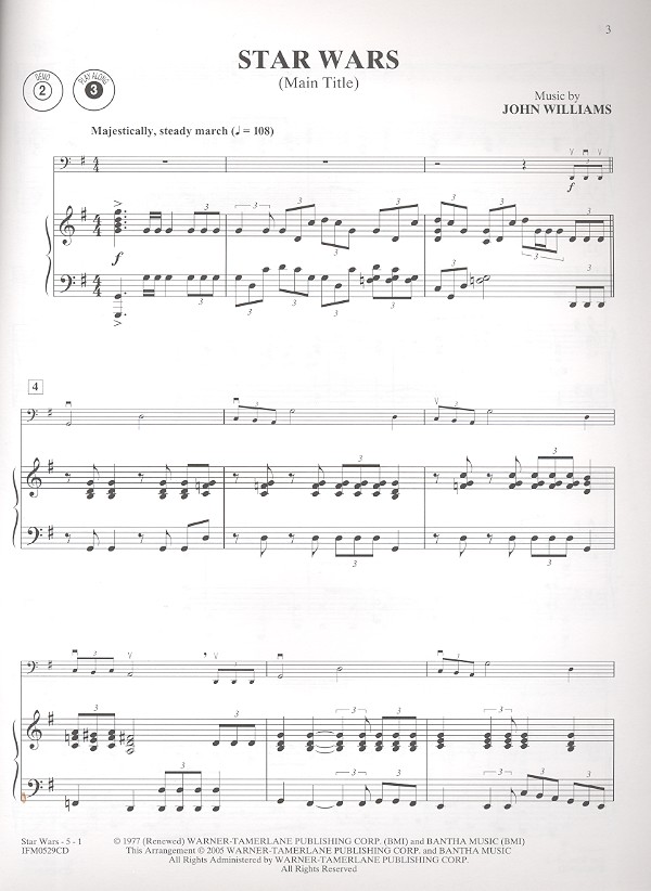 The Phantom Menace Star Wars (Main title) Duel of the Fates Qui-Gon's Funeral Augie's Great municipal Band Attack of the Clones Across the Stars The imperial March The Meadow Picnic May the Force be with you Revenge of the Sith Princess Leia's Theme Battle of the Heroes The Throne Room