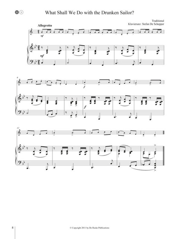 Ausgewählte Stücke für den Junior- und D1-Bereich Beefy Bongo (Davis) Geared up (Davis) Oh when the Saints go marchin' in What shall we do with a drunken Sailor Allegro (Mozart) Menuett (Bach) Ballade (Shelukov) Nr.11 (Hering) The Intruder (Rae) A simple Song (Norton) Stately Dance (Norton) Joshua fit the Battle of Jericho Flamenco Flirt (Davis) Presto (Telemann) Sonata Nr.1 (Hook) Starke Töne ist eine Sammlung, die in Zusammenarbeit mit der Bläserjugend des Bundes Deutscher Blasmusikverbände (BDB) entstanden ist. Die Sammlung enthält eine Auswahl der beliebtesten Titel aus den Literaturlisten zum Jungmusiker-Leistungsabzeichen Bronze (D1) bzw. Junior. Die Vorteile liegen dabei klar auf der Hand: Die Instrumentalisten sparen mit diesem Buch nicht nur wertvolle Vorbereitungszeit, sondern auch bares Geld, denn wer fruher mehrere Hefte anschaffen musste, hat mit Starke Töne bereits das Beste in einem Band versammelt. Somit befriedigt diese Ausgabe eine lang bestehende Nachfrage. In jeder Ausgabe ist jedes Stuck mit einerKlavierbegleitung notiert, ursprungliche Solostucke wurden eigens mit einer neu komponierten Begleitung versehen. Der Klavierpart ist in der Regel einfach bis mittelschwer, sodass die Begleitung auch von fortgeschrittenen Klavierschulern ubernommen werden kann.Ein großer Vorteil fur die Vorbereitung auf die praktischen Leistungsprufungen ist die jedem Heft beiliegende CD, welche die auf einem echten Konzertflugel aufgenommenen Klavierbegleitungen enthält. Neben Einspielungen im Originaltempo sind die meisten Stucke zum leichteren Einstudieren auch in einer weiteren Version im langsameren Tempo zu hören.Mit Starke Töne ist in Zusammenarbeit mit dem BDB eine wertvolle Sammlung fur alle Blasinstrumente und Klavier sowie fur Schlagzeug entstanden, die selbstverständlich auch unabhängig von den Leistungsabzeichen das Unterrichts- und Vortragsrepertoire fur jede dieser Besetzungen bereichert.