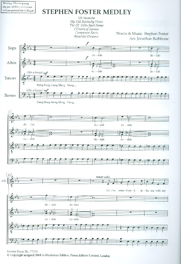 Kikapust Choral Series Rathbone, Jonathan, Arr. Oh Suzanna My old Kentucky home The Ol' Folks Back Home I dream of Jeannie Camptown races Beautiful dreamer