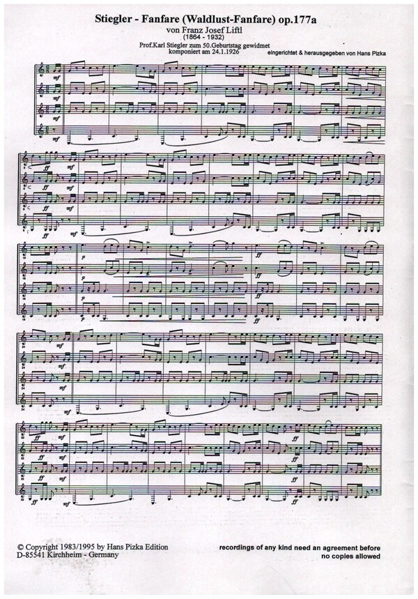 Produktinformationen "Stiegler Fanfare (Waldlust) - Jubiläumsmarsch"