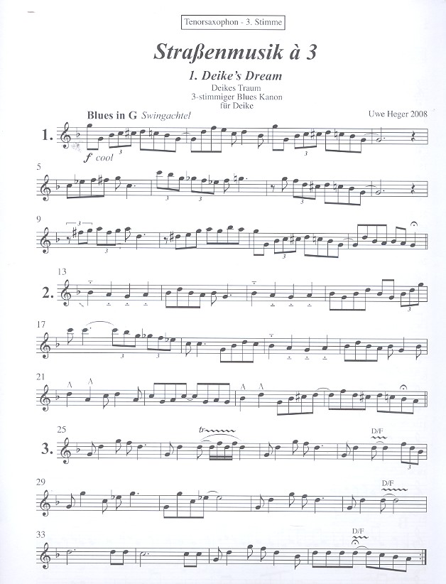 | Untertitel: | für 3 Saxophone 3. Stimme Tenorsaxophon |