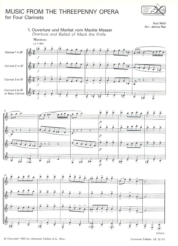 | Untertitel: | für 4 Klarinetten oder 3 Klarinetten und Bassklarinette |