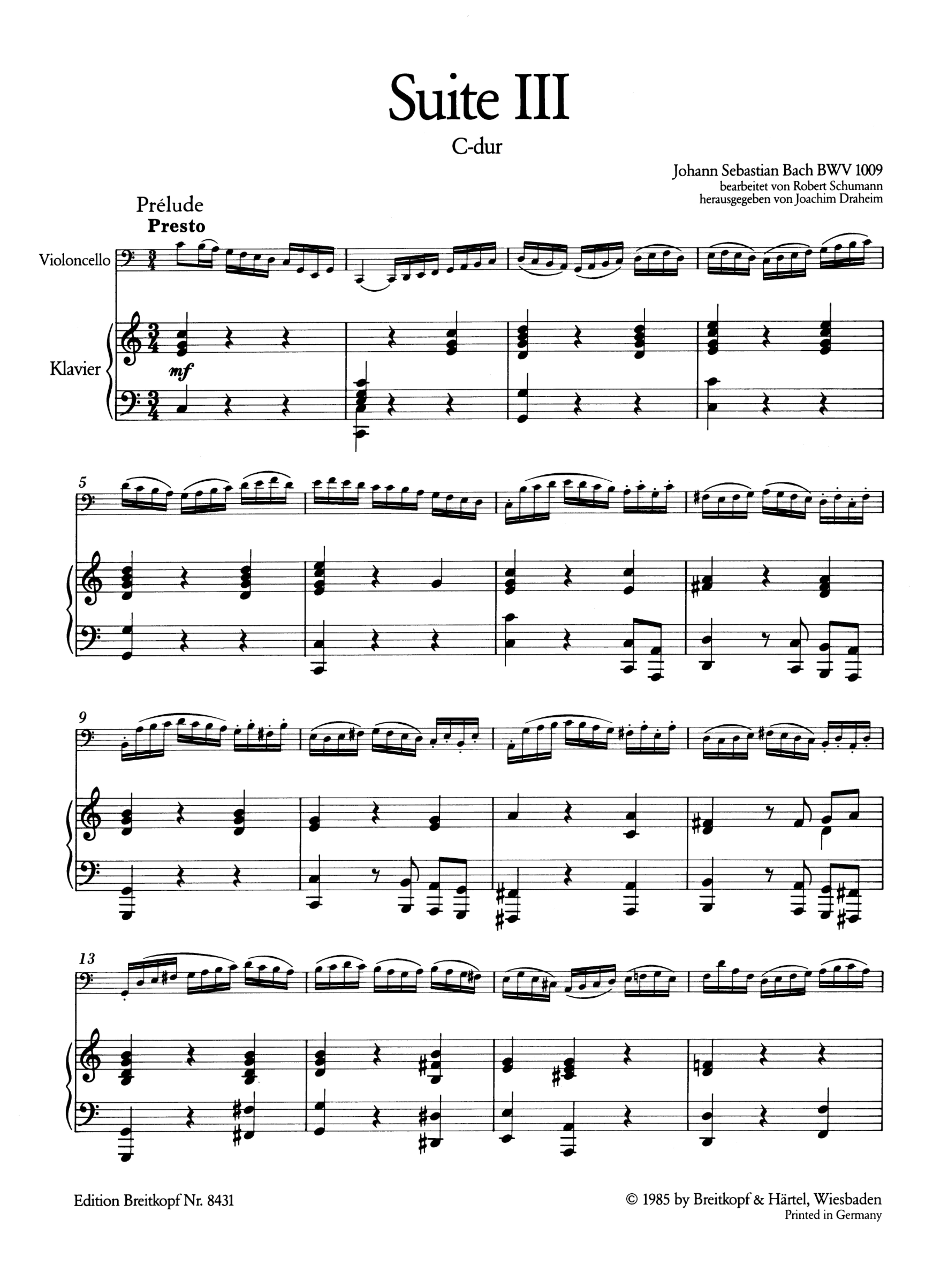 Produktinformationen "Suite C-Dur Nr.3 BWV1009"