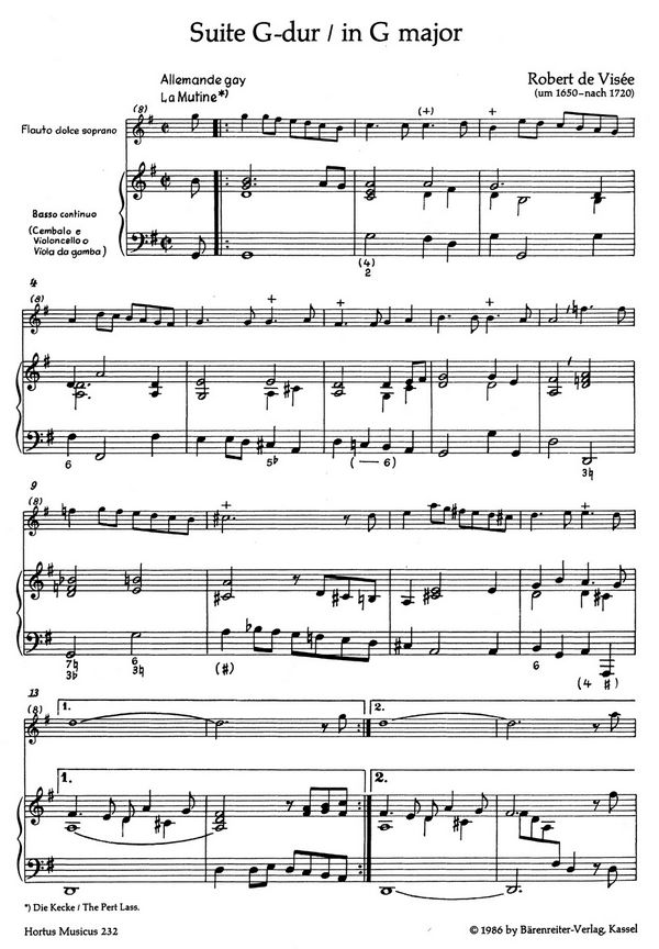 Suite G-Dur für Sopranblockflöte