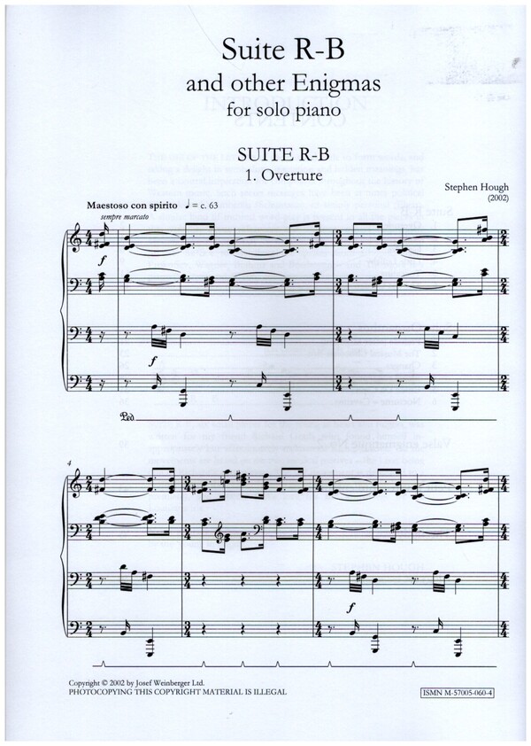 Suite R-B 1. Overture 2. Waltz 3. gavotte 4. Little Lullaby 5. Toccatina 6. The Iris Garden Suite Osmanthus 1. Prelude (after Mompou) 2. The Musical Chocolate Box 3. Changes 4. Elegie enigmatique 5. Etude Da capo 6. Nocturne - Cavatina Valse enigmatique No.2 Petit Impromptu enigmatique Threnody Elegy