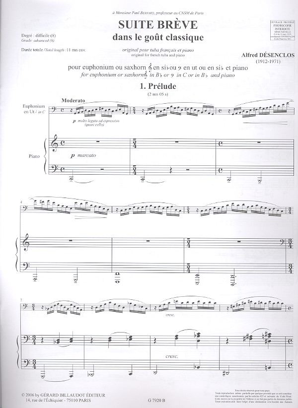 | Untertitel: | classique pour euphonium ou saxhorn en sib ou ut et piano |