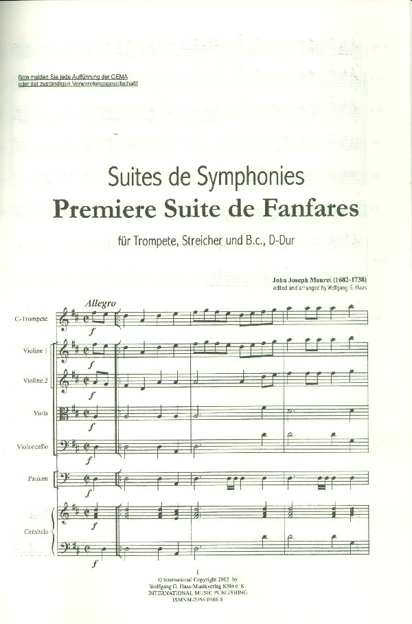 | Untertitel: | für 2 Trompeten (D/C/A), Pauken und Orgel Partitur und Stimmen |