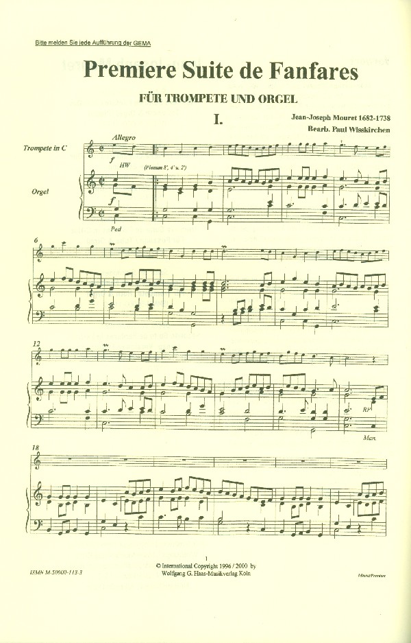 Wisskirchen, Paul, ed Suites de symphonies Premiere suite de fanfares Europäische Musik : England 17./18. Jahrhundert