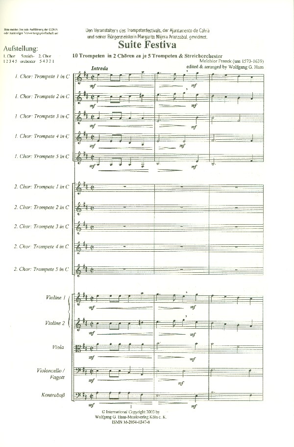 | Untertitel: | für 10 Trompeten in 2 Chören, Streichorchester und bc Partitur und Stimmen |